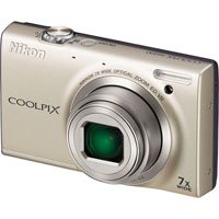 The Nikon Coolpix S6100 features a 7x optical zoom Nikkor glass lens, a 16 MP CCD image sensor, 3200 max ISO for taking pictures in low light conditions, a 3.0-inch LCD touch screen with 460,000 pixels, HD video recording at 720p quality with stereo sound, and Nikon's Vibration Reduction Image Stabilization.